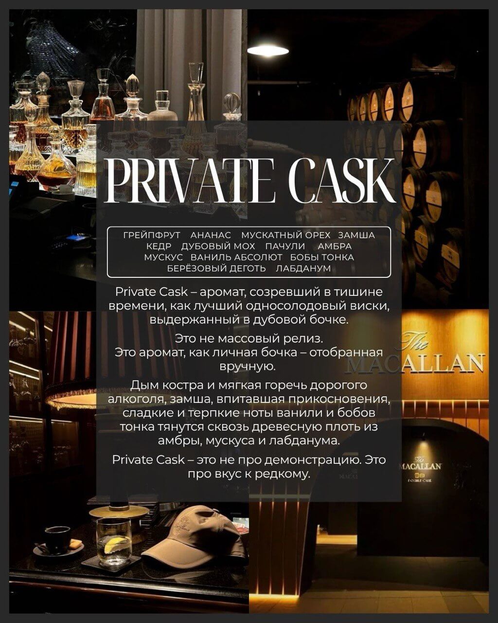 Private Cask — аромат, созревший в тишине времени, как лучший односолодовый виски, выдержанный в дубовой бочке.